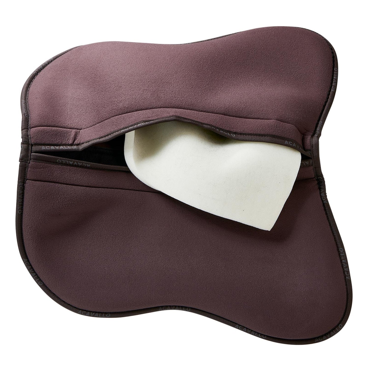 The Acavallo® flat pad features innovative memory foam with a suede lining, providing superior shock absorption and comfort. Its anatomical design and memory foam adapt perfectly to your horse’s shape, ensuring even pressure distribution and vibration dampening. With customizable riser pockets and four high-density foam layers, you can tailor the fit for optimal saddle support. Compatible with all English saddles, this pad enhances both horse and rider comfort, whether used alone or with a traditional square pad. Experience improved performance and protection with this versatile, adjustable half pad.