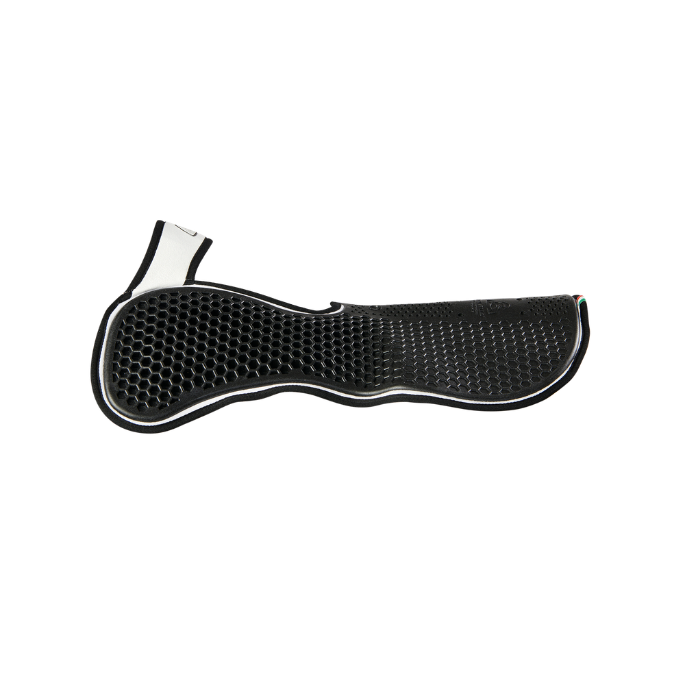 The Acavallo Pad Sp Wfs Suede Hexagonal Gel Front Riser offers superior comfort and protection for your horse. Featuring a hexagonal gel structure combined with a suede lining and 4mm open-cell foam, it provides excellent shock absorption, breathability, and non-slip performance. Its withers-free design and front riser ensure an optimal fit, adapting to various English saddle shapes while relieving pressure on the horse’s withers and back. This pad enhances saddle stability and promotes your horse’s comfort during every ride.