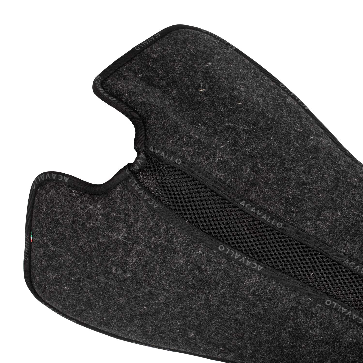 The Acavallo dressage shape memory foam flat pad features a double layer of eco-friendly felt, offering natural insulation that is warm, lightweight, and waterproof. Its free withers design reduces pressure, enhancing saddle fit and allowing greater shoulder freedom. The internal memory foam provides superior shock absorption, ensuring comfort for both horse and rider while supporting close contact and optimal performance. Crafted with sustainable materials and low-impact technologies, this pad combines advanced functionality with environmental responsibility.