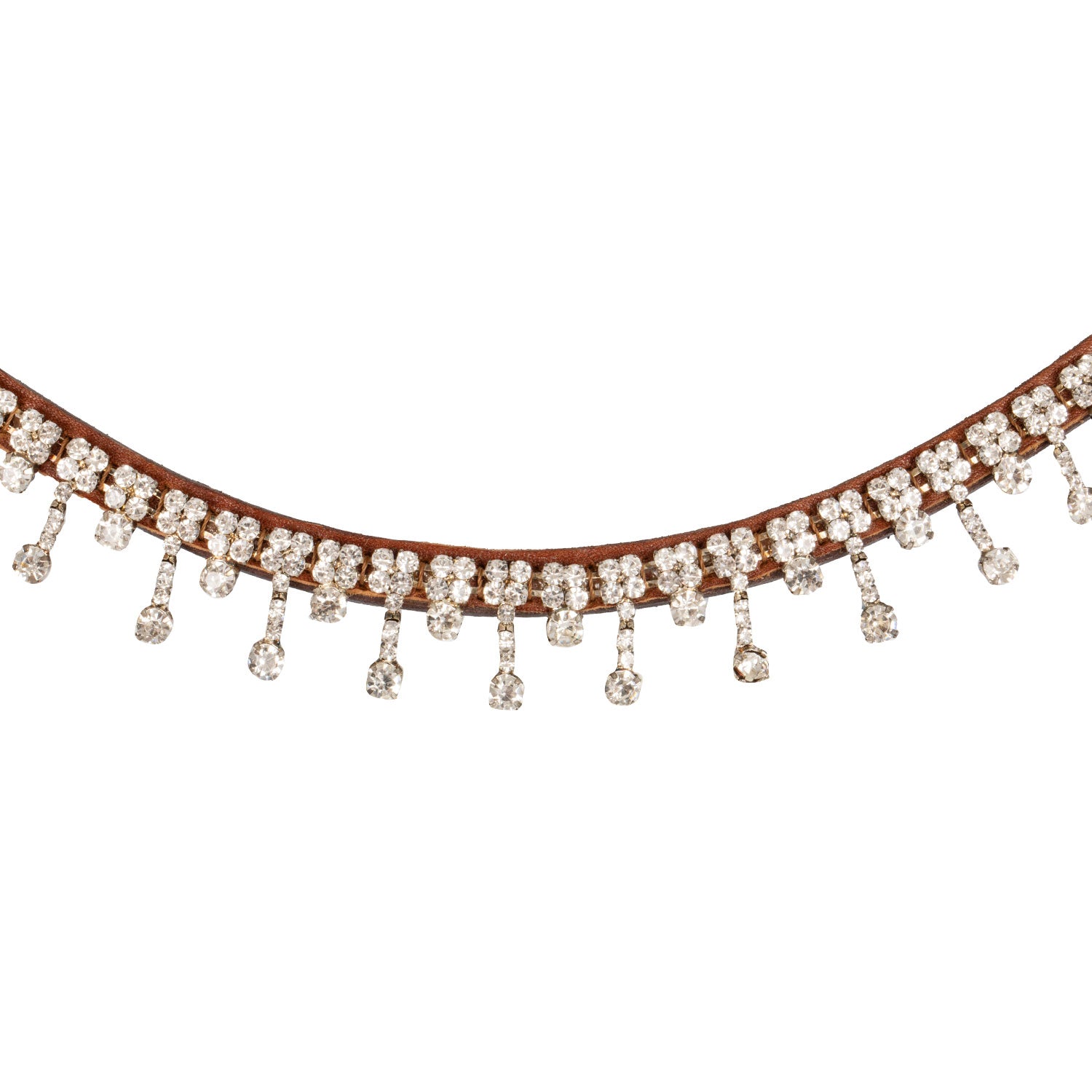 Acavallo Queen Browband Calfskin & Crystals - Brown/Transparent / Cob is backordered and will ship as soon as it is back in stock.