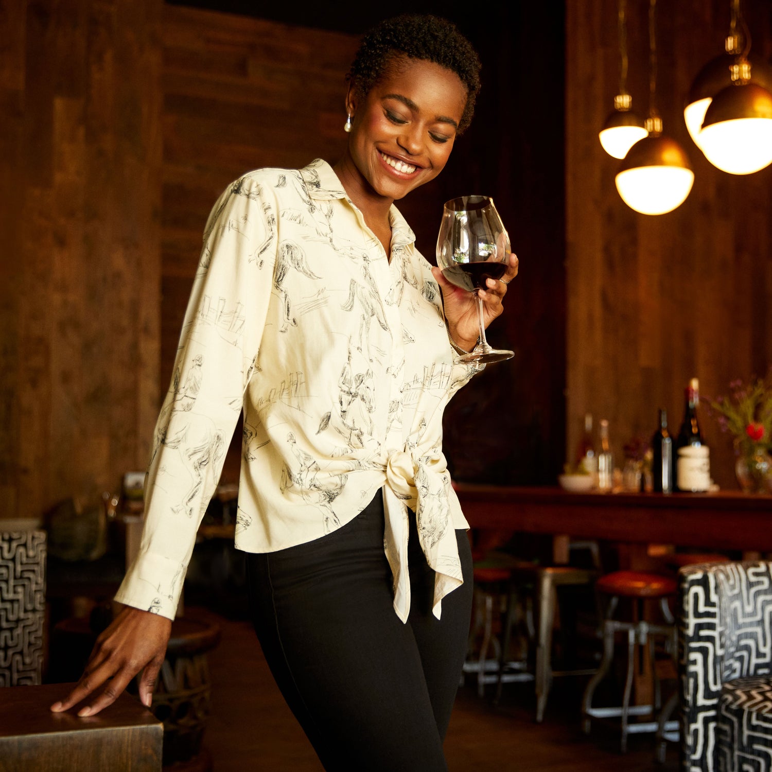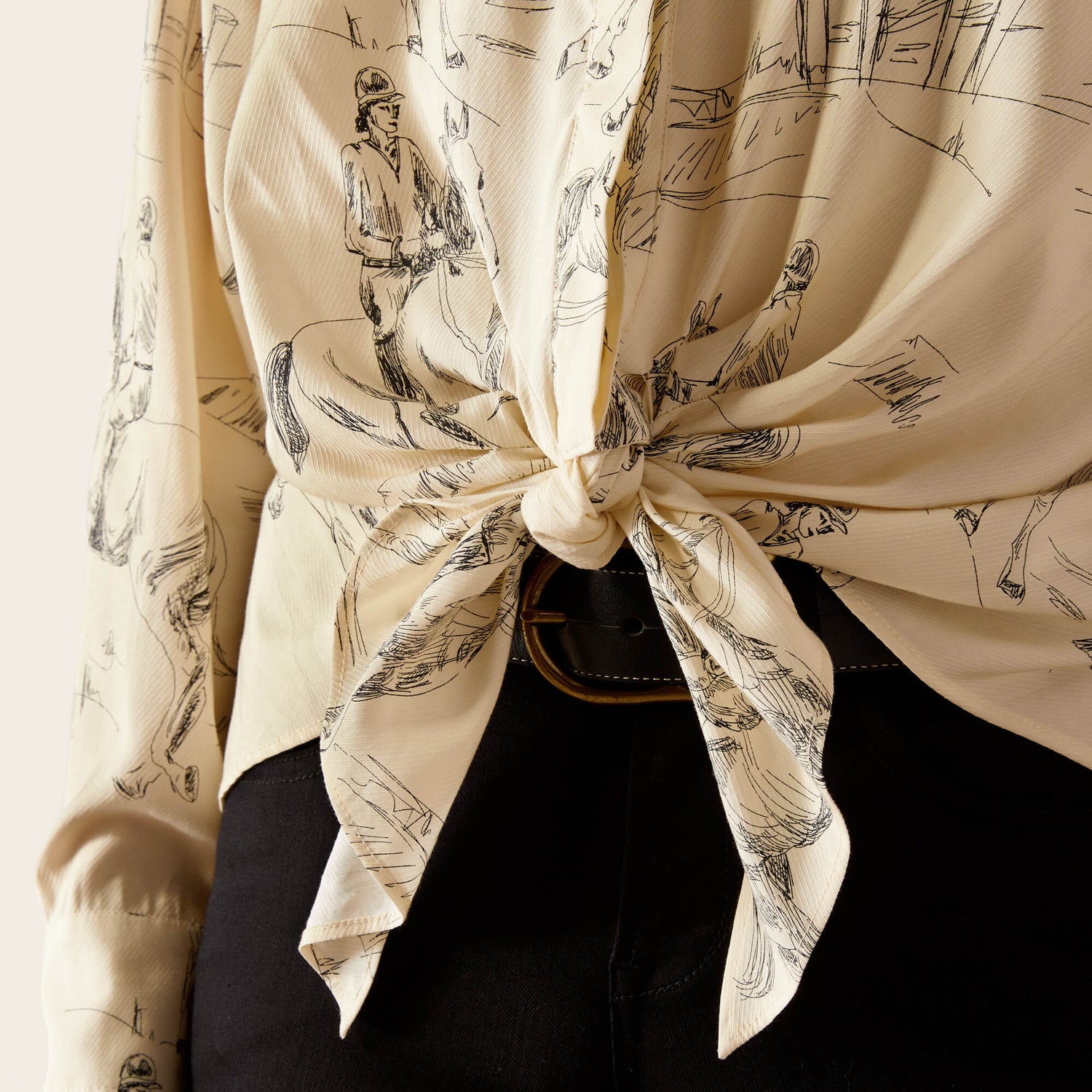 - Button down with tie front detail at the bottom