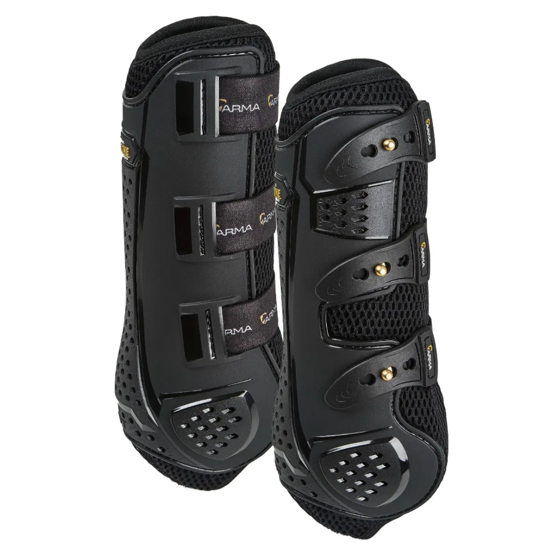 The Shires ARMA OXI-ZONE Training Boots deliver next-generation, all-round protection with superior temperature regulation, making them ideal for multi-discipline training. Designed to prevent injuries caused by bruising, abrasion, and trauma, these boots combine advanced materials and innovative features to keep your horse protected and comfortable.