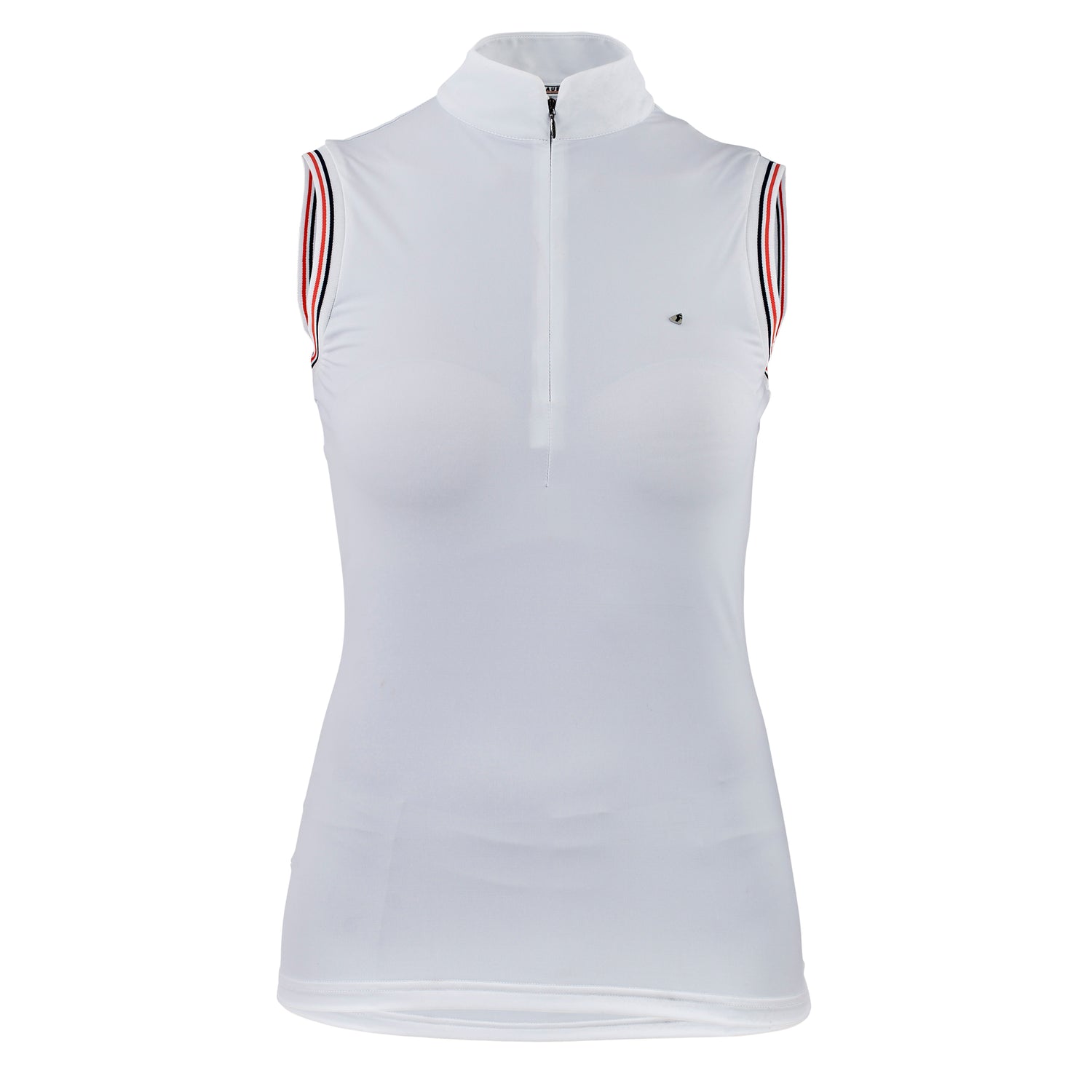 Fresh feeling in looks and performance, the Arcaster show shirt features a sleeveless design making it great in warmer weather. Smooth and quick drying, fabric is light and cool and stretches with the rider's movement. A highline neck features an inset 1/4 zip fastening to offer additional ventilation out of the arena.