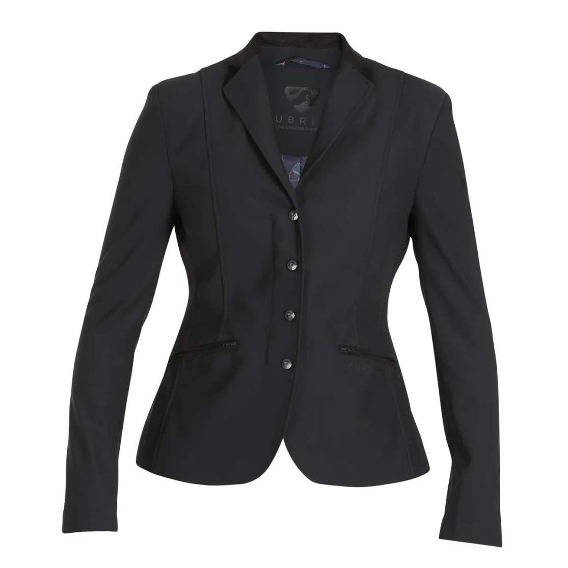 The Shires Aubrion Children's Brixton Show Jacket is a supple jacket is cut for a saddle skimming length and a slim contour shape. Multiway flex-fit fabric and unlined sleeves give the competitive rider total freedom and a sleek look. Aspirator perforated side and under arm panels look stylish and offer targeted ventilation, fabric is quick drying and breathable.