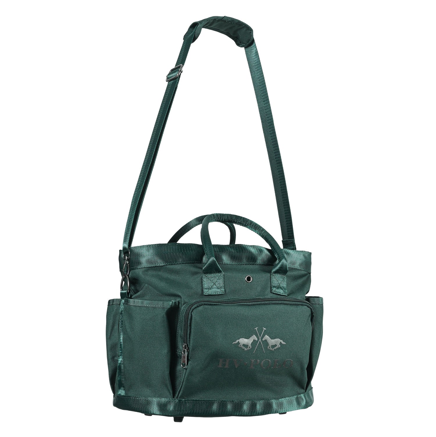 Introducing the HV Polo Jonna Grooming Bag, a classic design perfect for every equestrian. This bag features convenient handles and a shoulder strap for effortless transportation, and is made from material with a PVC coating on the backside for waterproof protection. With dimensions of L: 43cm at the top and 34cm at the bottom, W: 21cm, and H: 29cm, this bag is the ideal size for all your grooming needs.