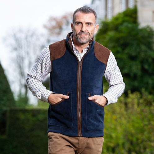 Featuring faux suede shoulder pads and open pockets for a classic rural style, the Baleno Newington Mens Fleece Bodywarmer includes an interior zip pocket to act as a supplemental lining in the Oakwood and Livingstone collections.