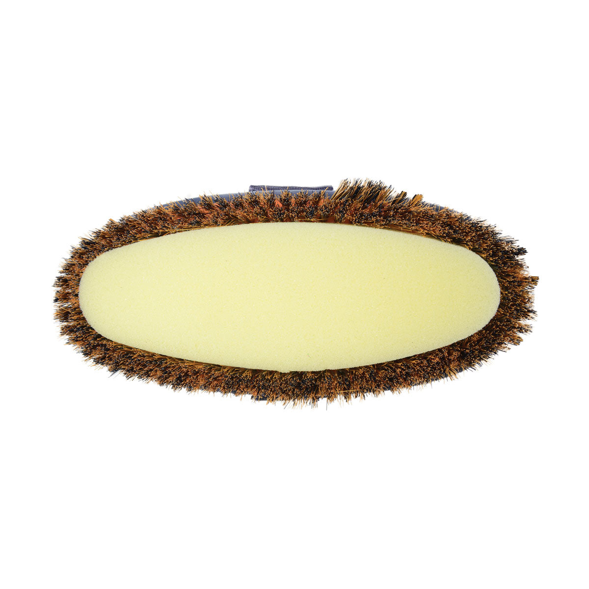 Two tone, soft touch large oval sponge brush with soft PP bristles.