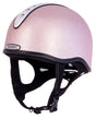 - A low-profile jockey skull helmet with a central ventilation strip and a durable sanded and painted acrylic finish.