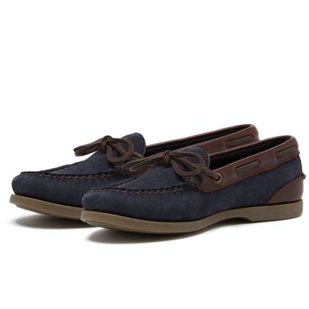 The Chatham Olivia G2 is a super-soft, slip-on deck shoe, crafted from premium nubuck leather in navy blue with dark seahorse leather - a rich shade of brown - with same-colour collar, lace detail, heel counter and non-slip rubber sole. It has a classic moccasin construction which is hand stitched on the last and also features new sole spring poron performance cushioning, which is anti-bacterial and offers maximum comfort and shock absorption. Designed with a nautical lifestyle in mind, don't sail off without a pair.