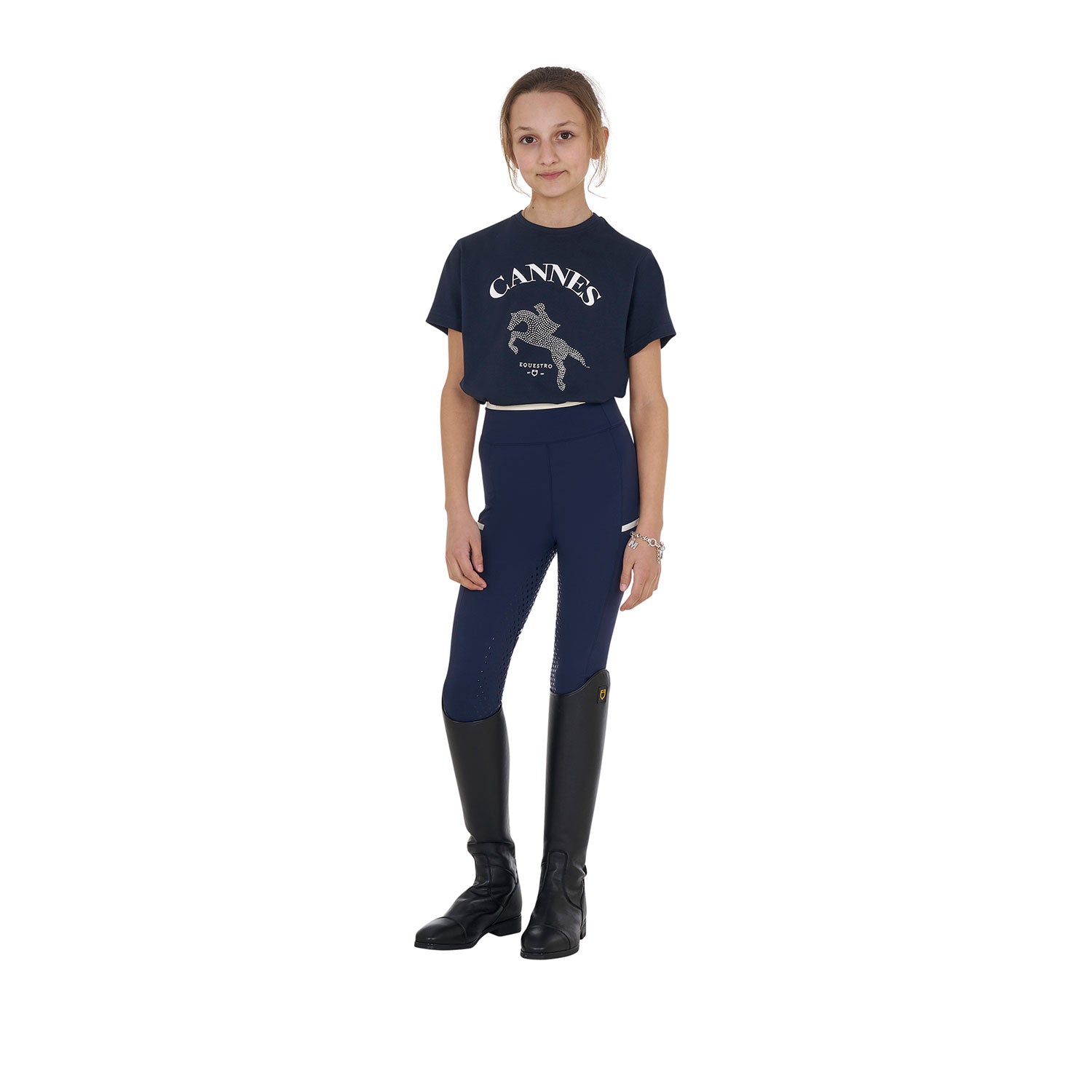 Girls' short-sleeved t-shirt with print and rhinestones. The high quality design makes it a versatile choice for any occasion. Girls' Cannes short-sleeved T-shirt made of soft cotton, designed to gently embrace the female silhouette thanks to its slim fit.