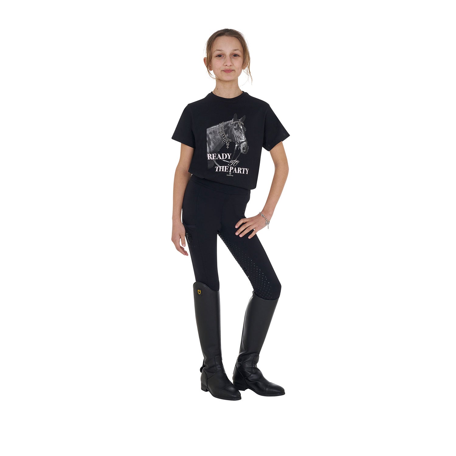 Equestro Girls' Ready To The Party Cotton T-Shirt With Rhinestones - Black / 10 Years is backordered and will ship as soon as it is back in stock.