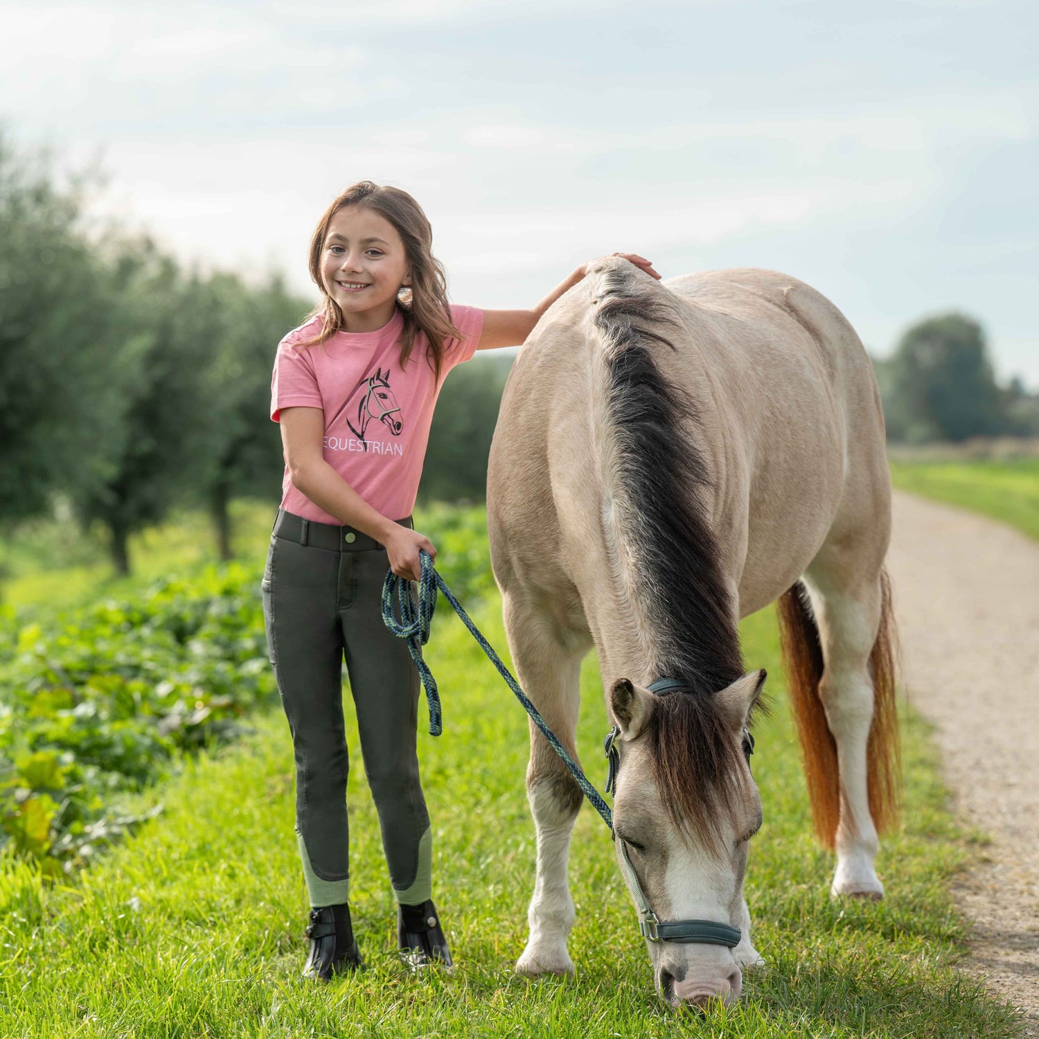 The perfect shirt for young horse enthusiasts, the HKM Children's T-shirt Grace combines style and comfort. Made from 100% breathable cotton, it's ideal for active kids at the stables or during playtime. The 3D horse head print and vibrant halter and lettering add a unique touch to this must-have piece.