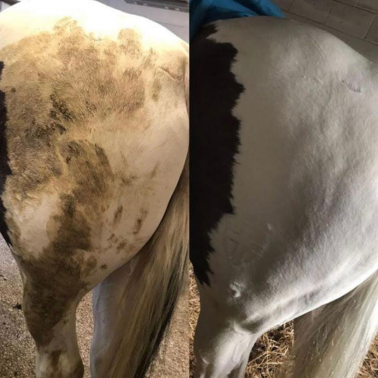 Smart Grooming's Polar White is a spectacular stain remover spray for horses which will help achieve instant whiteness. It has been designed to lift stable and grass stains as well as to remove stubborn discolouration on feathers, socks and tails when used as a spray shampoo.