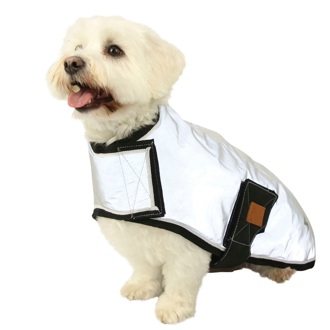 The Hy Equestrian Benji & Flo Silva Flash Dog Coat is the perfect way to help keep your dog safe and seen, during those darker months.