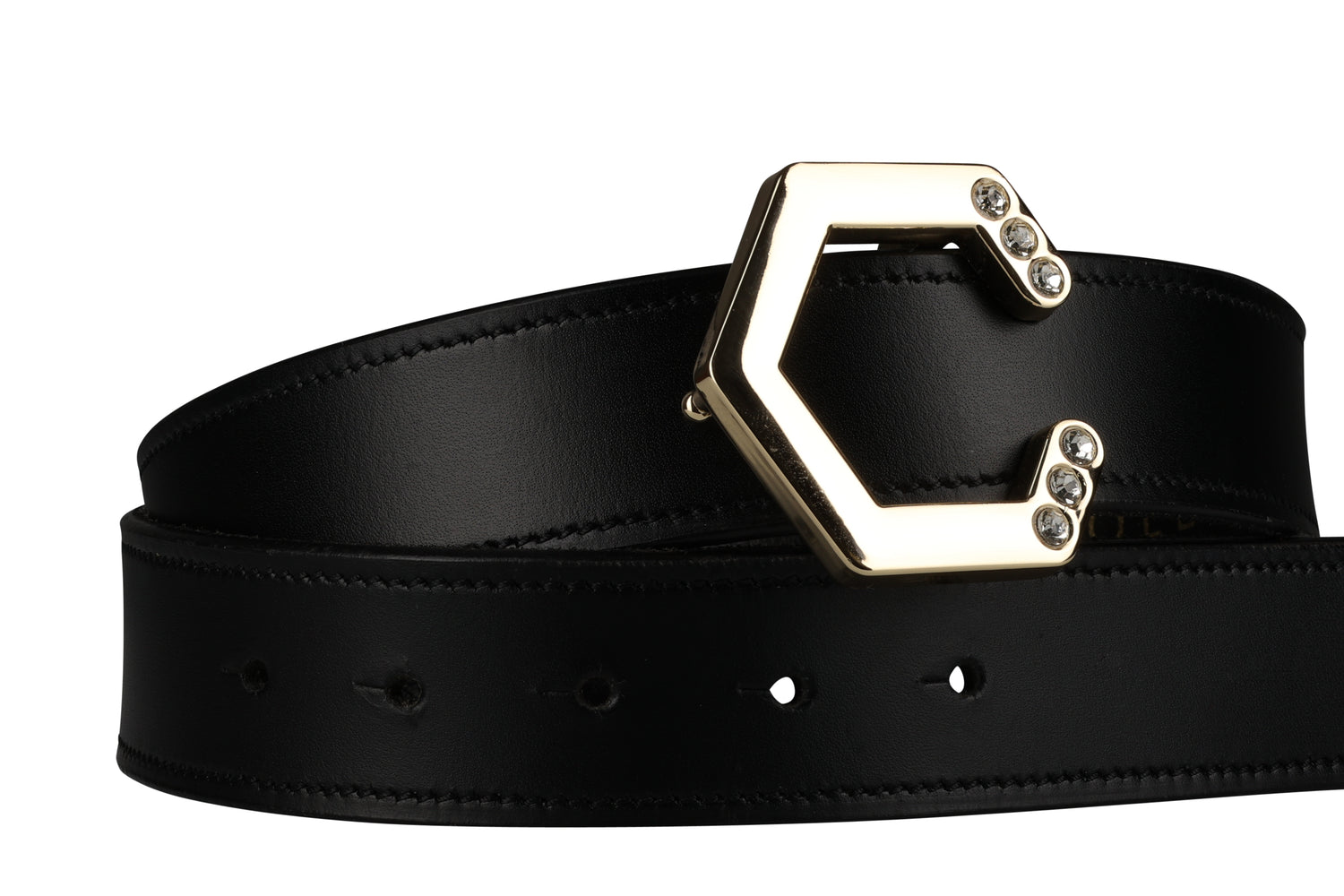 Coldstream Hutton Diamante Leather Belt - Black/Gold / 70cm is backordered and will ship as soon as it is back in stock.