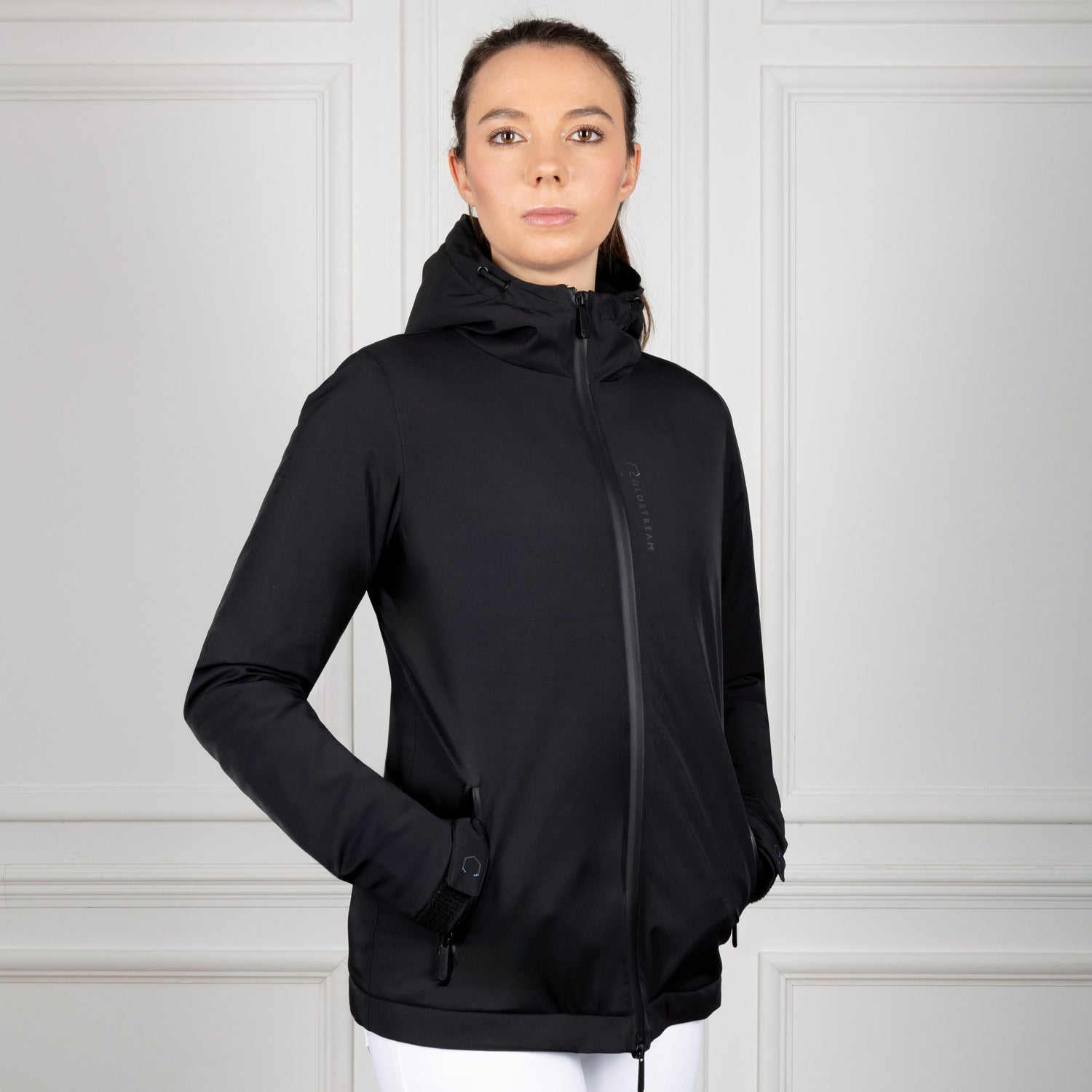 Evolved for the elite equestrian and fulfil everything they desire in a jacket. Engineered for maximum rain protection with a 10 000mm waterproof level and waterproof zips for complete element defence. Technical lycra hidden storm cuffs with thumbholes provide additional insulation and an innovatively developed magnetic hood means it stays in place whilst riding but easily accessible when required.