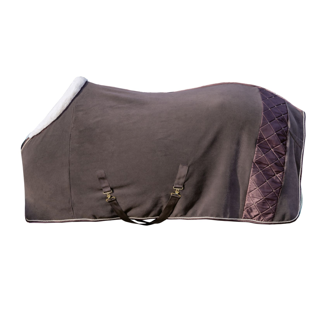 The HKM Basil Cooler is the perfect solution for keeping your horse cool and comfortable after a workout. This breathable sweat rug has optimal ability to absorb sweat, ensuring your horse stays dry and comfortable. The tail straps, adjustable and removable cross surcingles, as well as metal fasteners, ensure a secure fit. The diamond quilting can be found in the form of a noble border, while rhinestones and cords adorn the sweat blanket as a special eye-catcher.