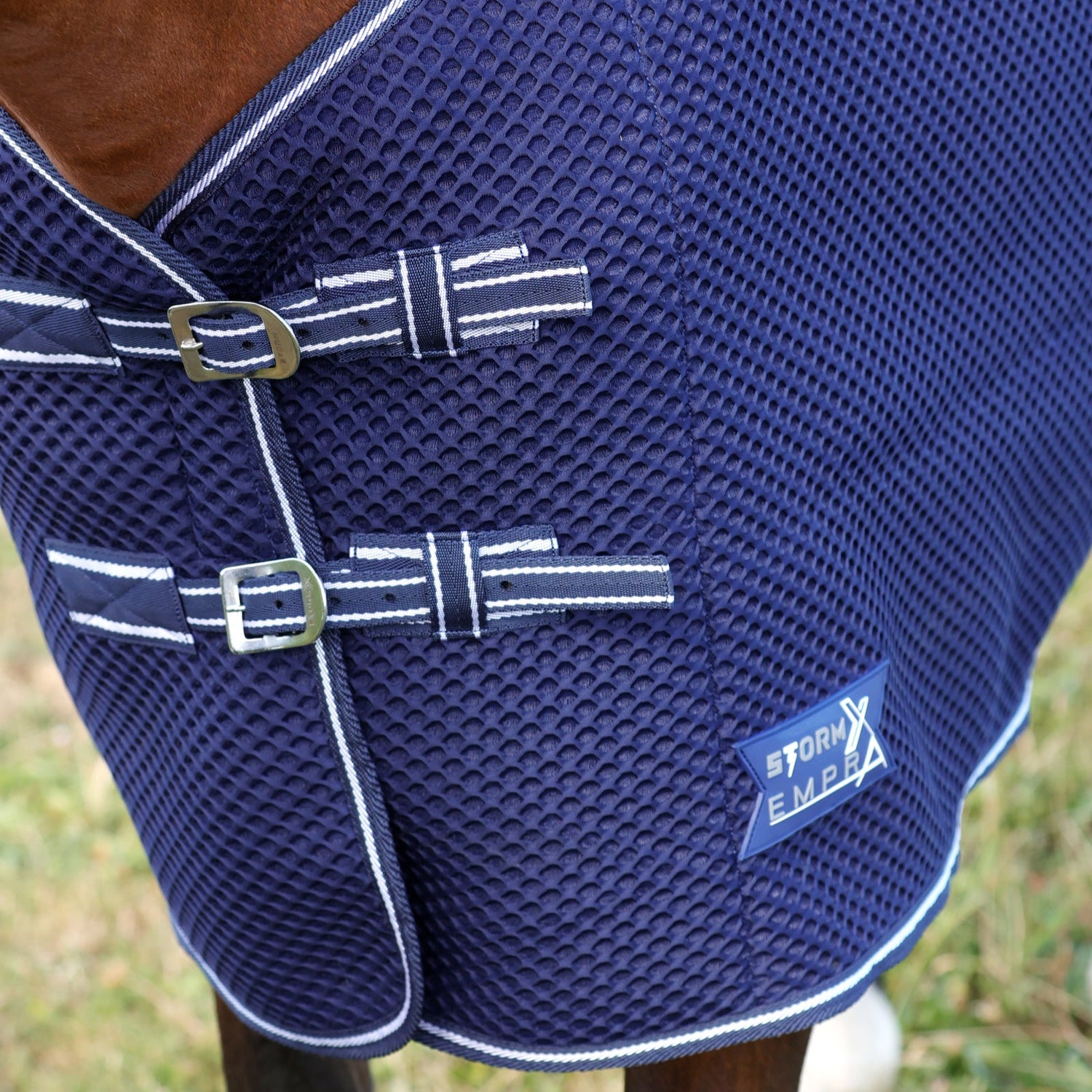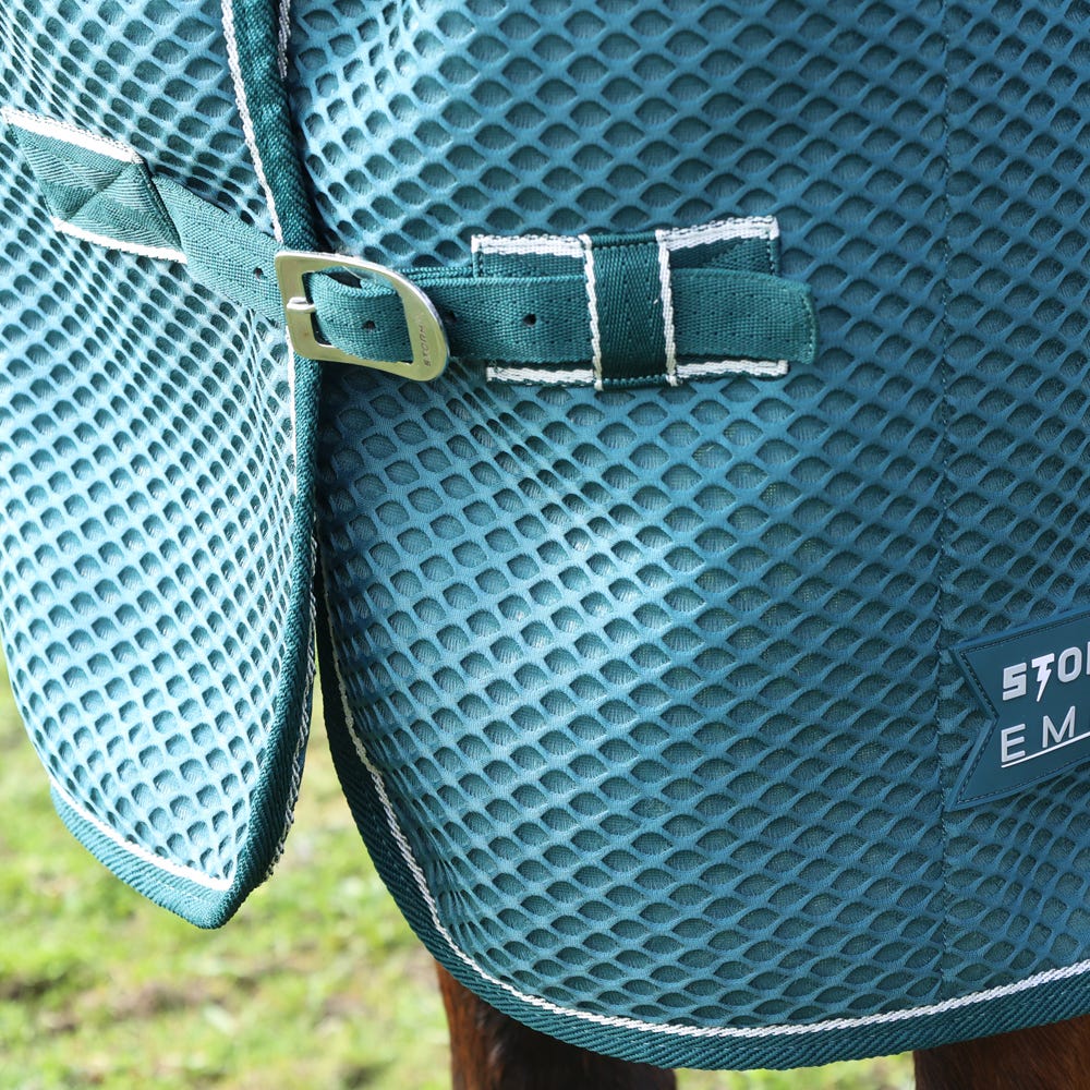 Using the latest innovative 3D Mesh with unique honeycomb structure, this rug utilises multifilament and monofilament molecular technology to promote air-motion action for ultimate ventilation and airflow. The spacer waffle weave fabric is soft to the touch so you can be assured your horse will look and feel luxurious. Completed with twin buckle chest fastenings, cross surcingle's and fillet string for a secure and perfect fit.