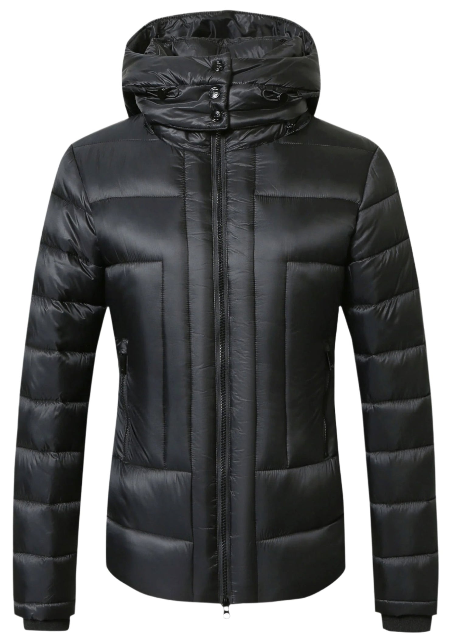 This Covalliero Ladies Padded Jacket features luxurious padding for optimal temperature and moisture management, as well as a high-closing double collar for added warmth. The drawstring allows the hood to be tailored for a perfect fit, and can be easily secured with a button or removed with a zip fastener. The jacket has a feminine, contoured silhouette and is equipped with two zipped handwarmer pockets for added convenience. Additionally, it is water-repellent and can be machine washed at 30 °C for easy maintenance.