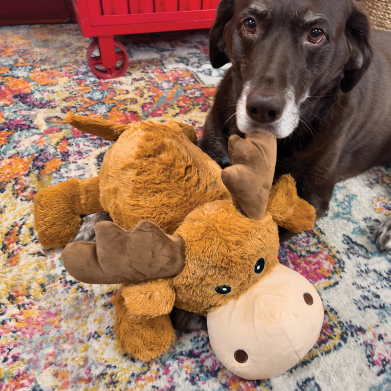 KONG Cozie Jumbo Marvin XL’s luxuriously soft plush make this one ginormously snug-able moose. The cuddly fur is reinforced with an extra layer of material for long lasting play! The squeakers spark natural instincts to keep play going for healthy, active fun.