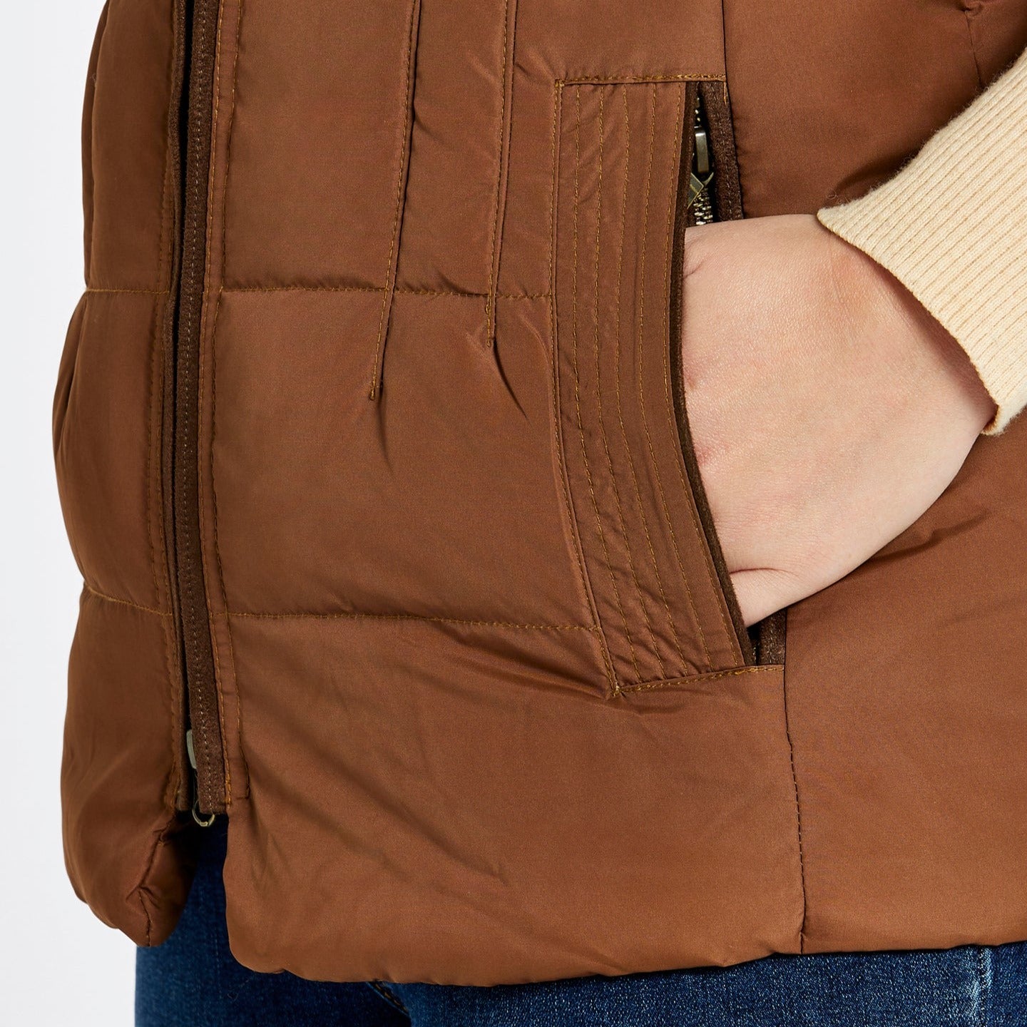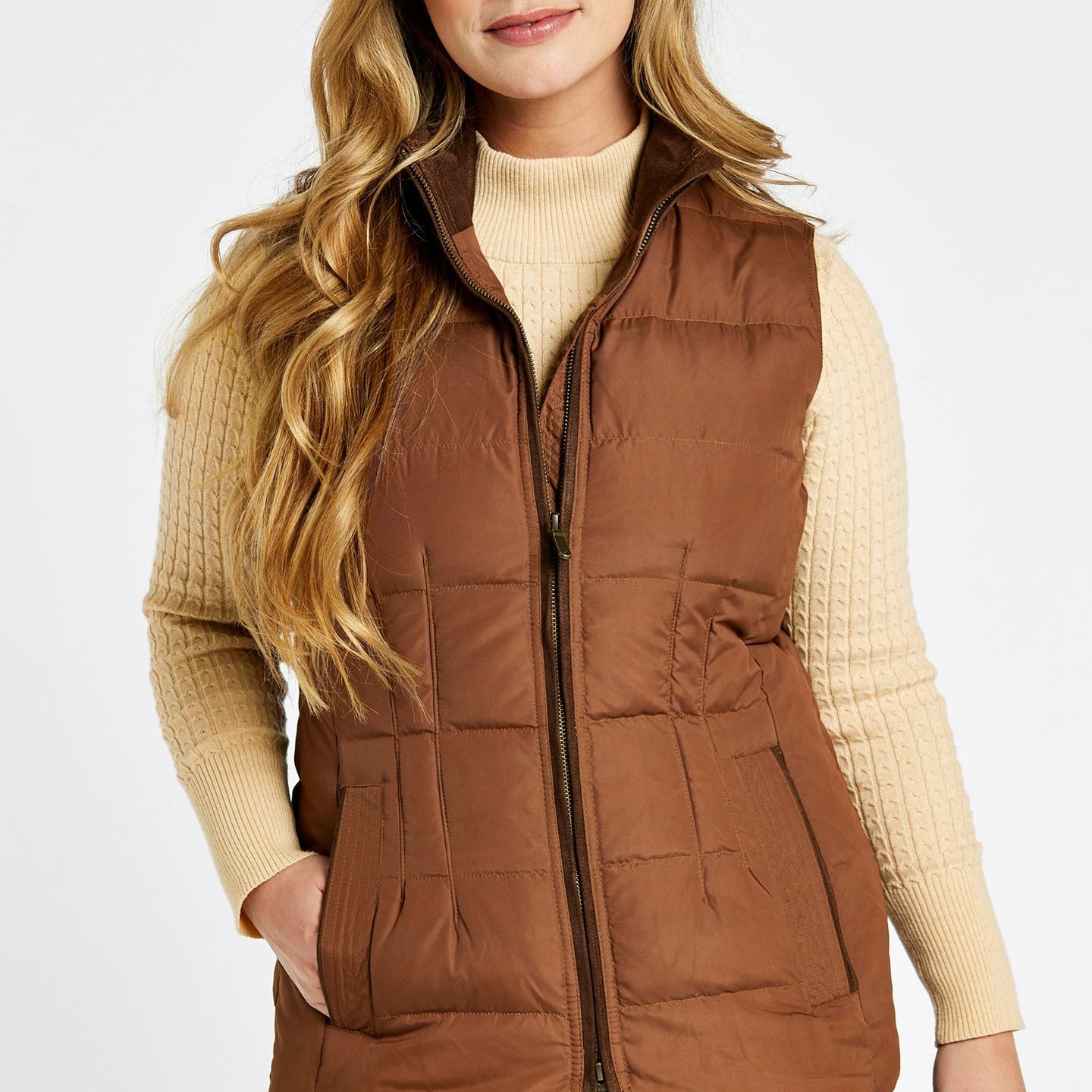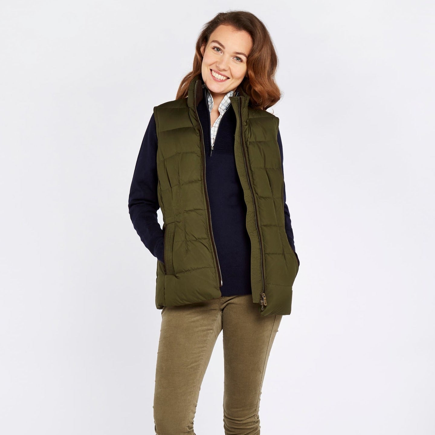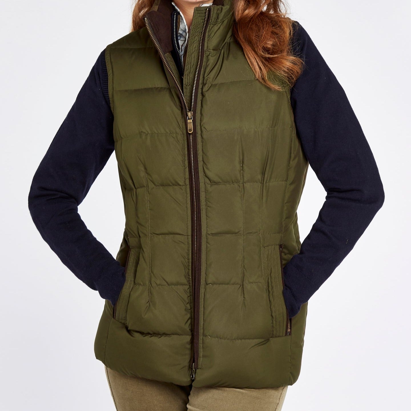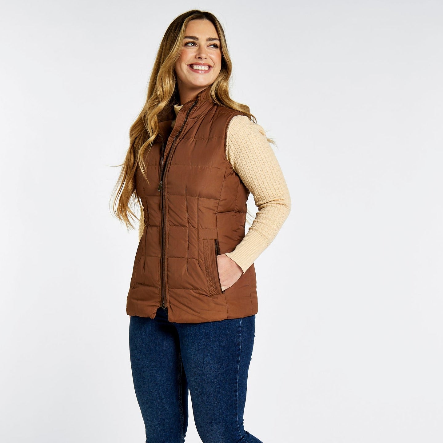 Super cosy, the Dubarry Spiddal Gilet is filled with fluffy feathers and down for plumped insulation yet tailored to give you a neat shape. Individually stitched panels keep the filling exactly where it should, a stand-up collar stops draughts and pockets are lined with fleece to help keep fingers from getting chilly. An excellent winter layer with a snuggly knit, or handy in cooler spring and autumn days over a light top.