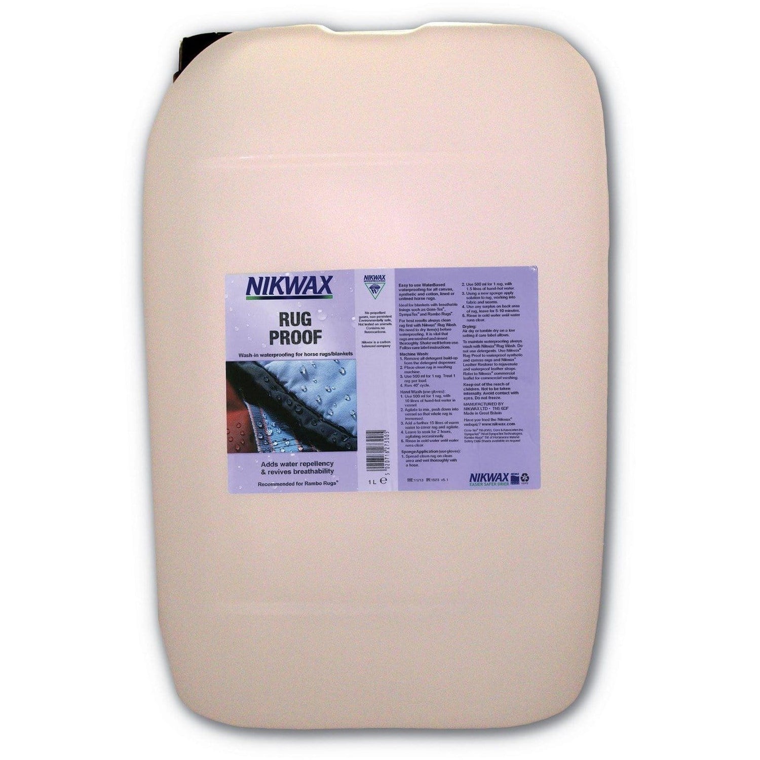 Nikwax Rug Proof adds Durable Water Repellency (DWR) whilst maintaining breathability. It is quick and easy to apply in the washing machine, and its DWR develops on air drying.