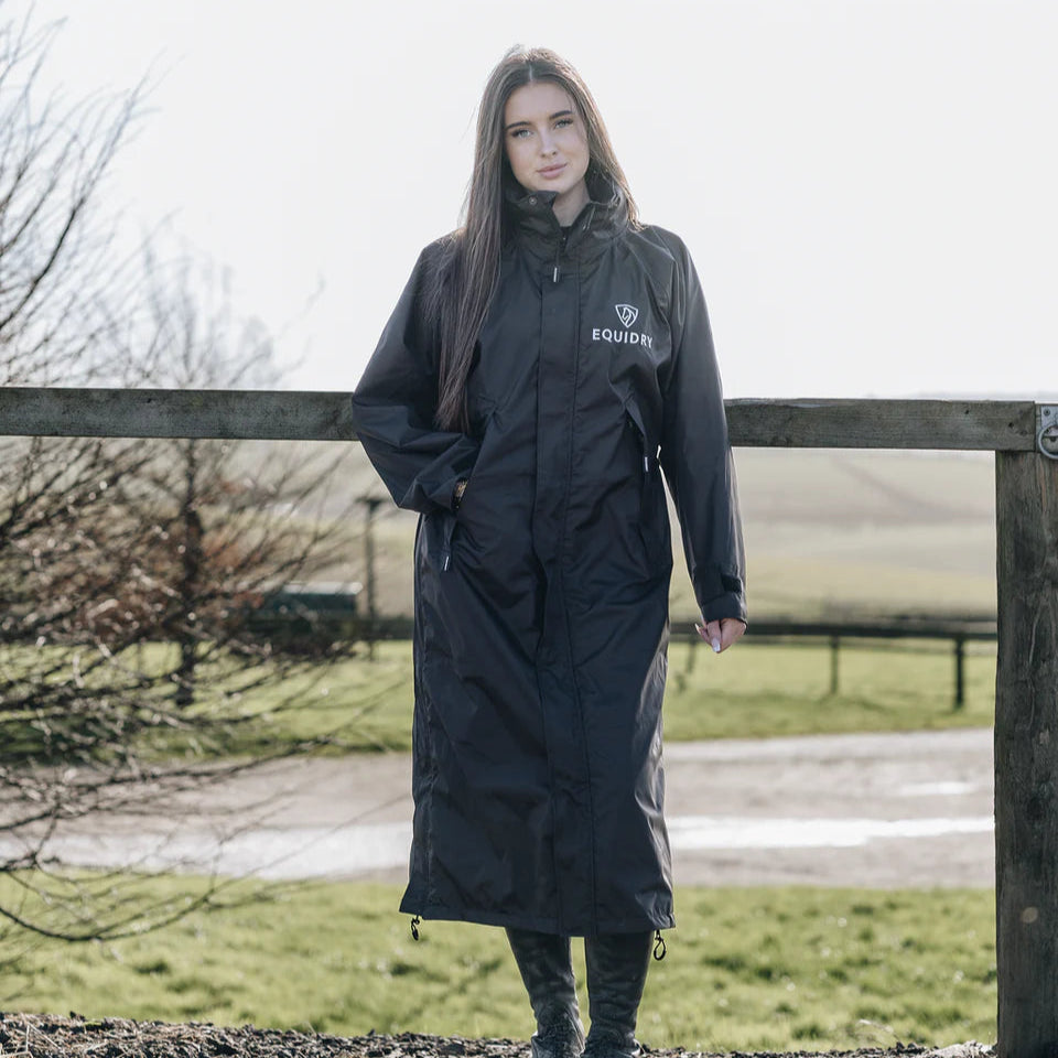 Stay dry, warm, and ready for anything in the EQUIDRY Evolution. Designed to be oversized and worn full length, this performance coat boasts a remarkable 20,000mm waterproof rating, is fully breathable, fleece-lined, and layer-friendly — even fitting over a body protector.