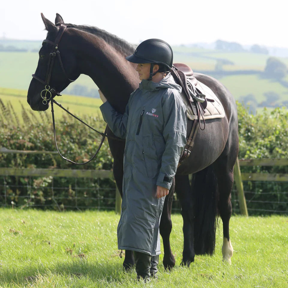 Stay dry, warm, and ready for anything in the EQUIDRY Evolution. Designed to be oversized and worn full length, this performance coat boasts a remarkable 20,000mm waterproof rating, is fully breathable, fleece-lined, and layer-friendly — even fitting over a body protector.