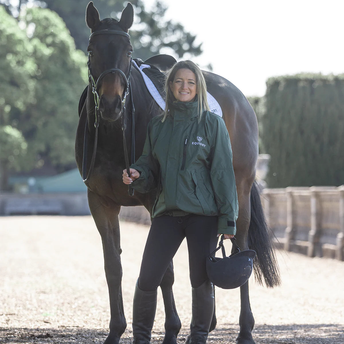 The EQUIDRY Shortie is a short, blouson-style jacket designed with advanced EQUIGUARD® technology, offering an impressive 20,000mm waterproof rating for outstanding protection against the elements. Its breathable mesh lining provides comfort in warmer weather while also allowing versatility for layering in colder conditions. The oversized, unisex fit ensures freedom of movement with ample room for additional layers or a body protector.