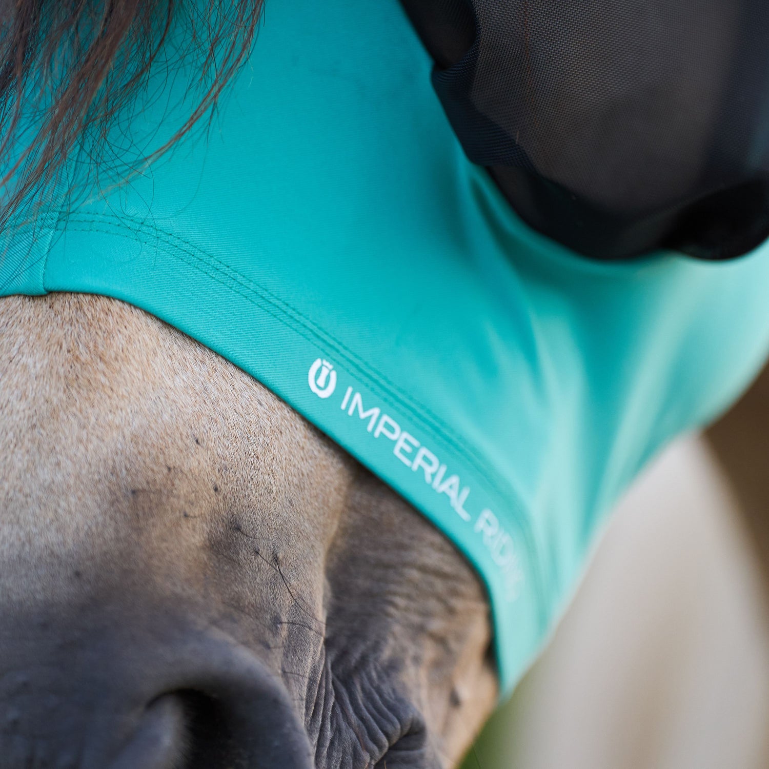 This lycra flymask is designed for ultimate comfort and protection, featuring mesh eye and ear panels to ensure breathability and visibility. Its lycra construction offers a snug fit, effectively keeping flies and insects at bay while minimizing irritation to your horse's sensitive areas.
