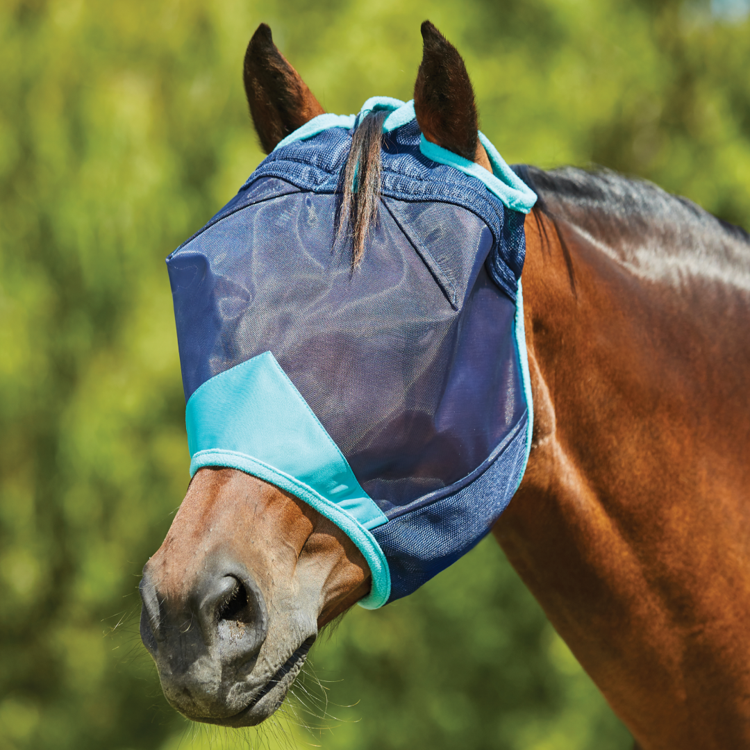 Weatherbeeta ComfiTec Deluxe Fine Mesh Mask - Navy/Turquoise / Pony is backordered and will ship as soon as it is back in stock.