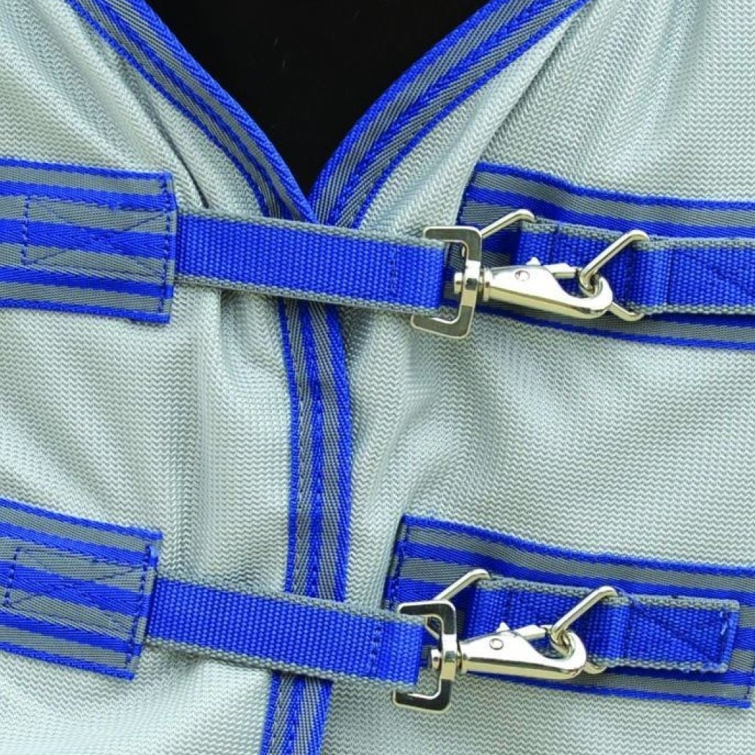 The WeatherBeeta ComFiTec Airflow II Detach-A-Neck provides all over comfort and premium protection. The soft and durable polyester mesh outer is breathable and provides insect protection with 75%+ UV block and Detach-A-Neck for versatility. Featuring ultra belly wrap for extra protection, full wrap tail flap that has a two piece design that wraps around the horse's quarters for maximum protection, Ezi-clip front closure with touch tape for fast and easy to use and traditional side gusset for natural movement.