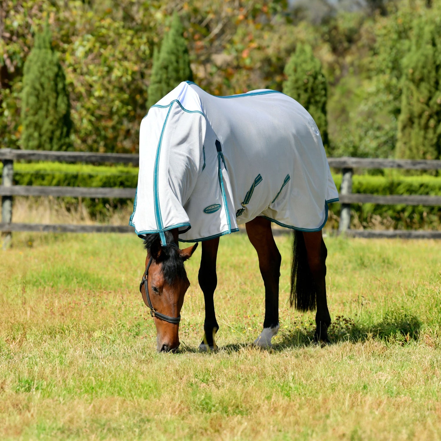 Offering 220gms of soft open weave design for optimum airflow, with a full wrap tail flap that has a two piece design that wraps around the horses quarters for maximum protection, elastic insert at the wither for additional comfort while grazing and Ultra belly wrap for extra protection from flies.
