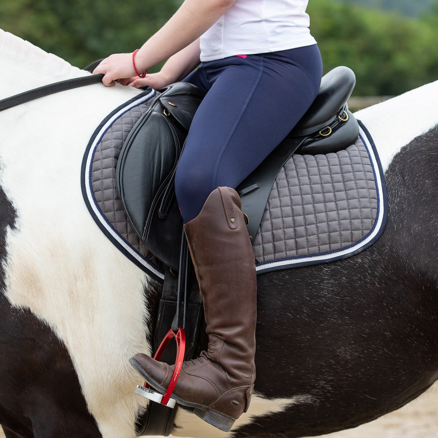 These GS Equestrian riding tights have two colours to them, with the secondary colour being located on the waistband, silicone knee grips, and on the ankle cuffs. The Mariah Riding Tights have slightly arrowed silicone knee grips, positioned strategically so that they increase the rider's stability in the saddle and reduces slipping. The silicone has a contrasting spotty pattern to add to the already modern design.
