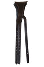 The throat lash strap has been strategically integrated into the headpiece to reduce the bulk in the sensitive TMJ area and allowing for the noseband and cheek piece buckles to lie flat against the horses skin.