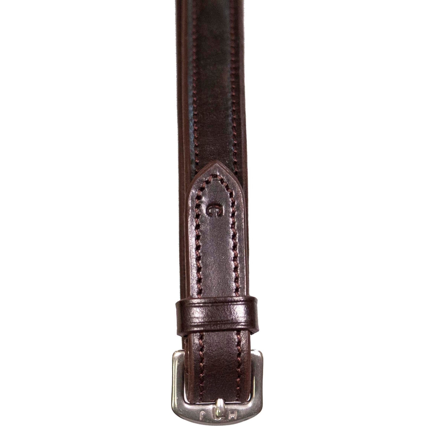 The Henry James Smooth Eventer Hybrid Rubber Reins With Leather Stoppers feature a smooth but grippy rubber pattern with hand stitched leather stoppers every 5cm. A slim lightweight rein suited for all activities, gives a grippy feel.