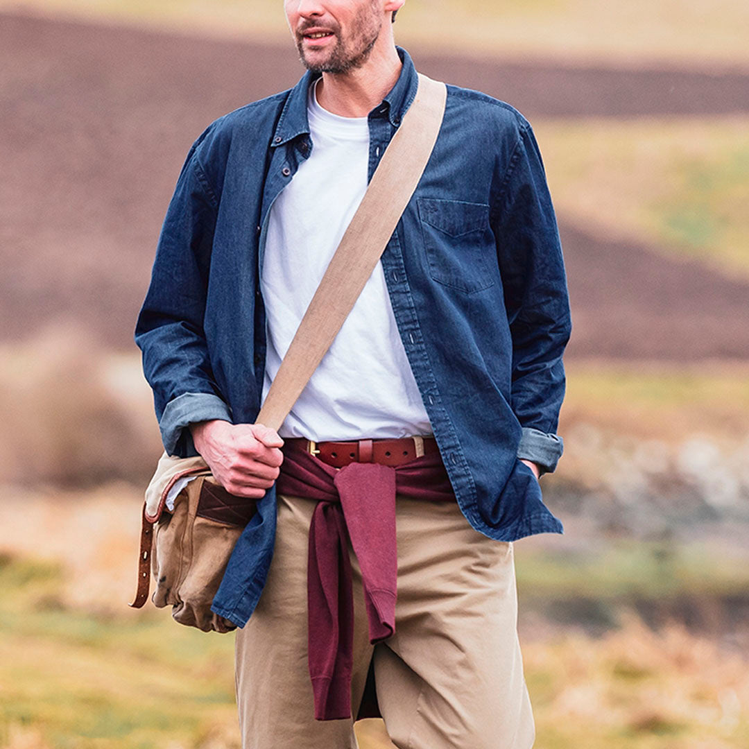 The Hoggs of Fife Archerfield Men's Denim Shirt is tailored with a lovely soft. cotton denim and works great on its own. or over Hoggs polo shirt for a stylish. practical way to layer up against the British weather.