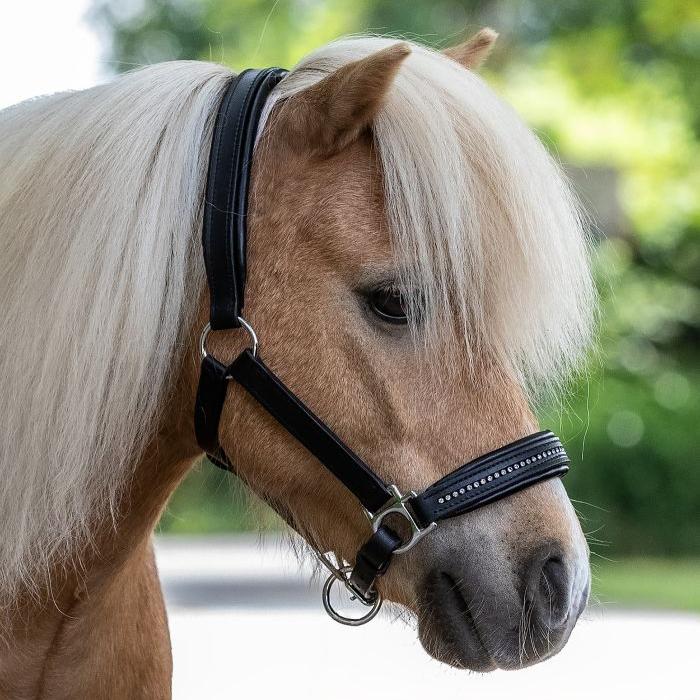 STAR Diamond Leather Halter - Black / Shetland is backordered and will ship as soon as it is back in stock.