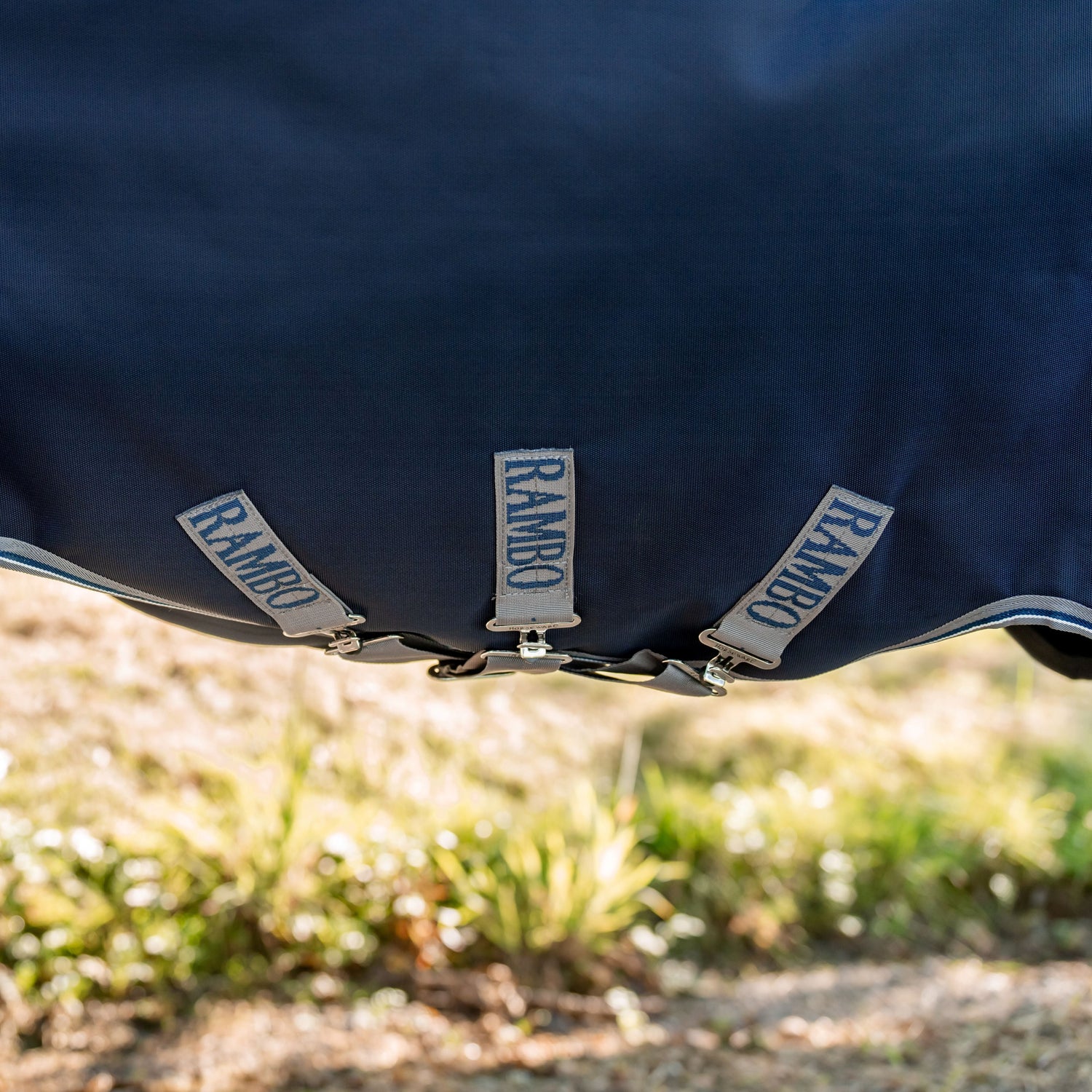 Horseware Ireland Rambo 1680D 100g Turnout Rug - Navy/Thunderstorm Grey/Silver / 5'6 is backordered and will ship as soon as it is back in stock.