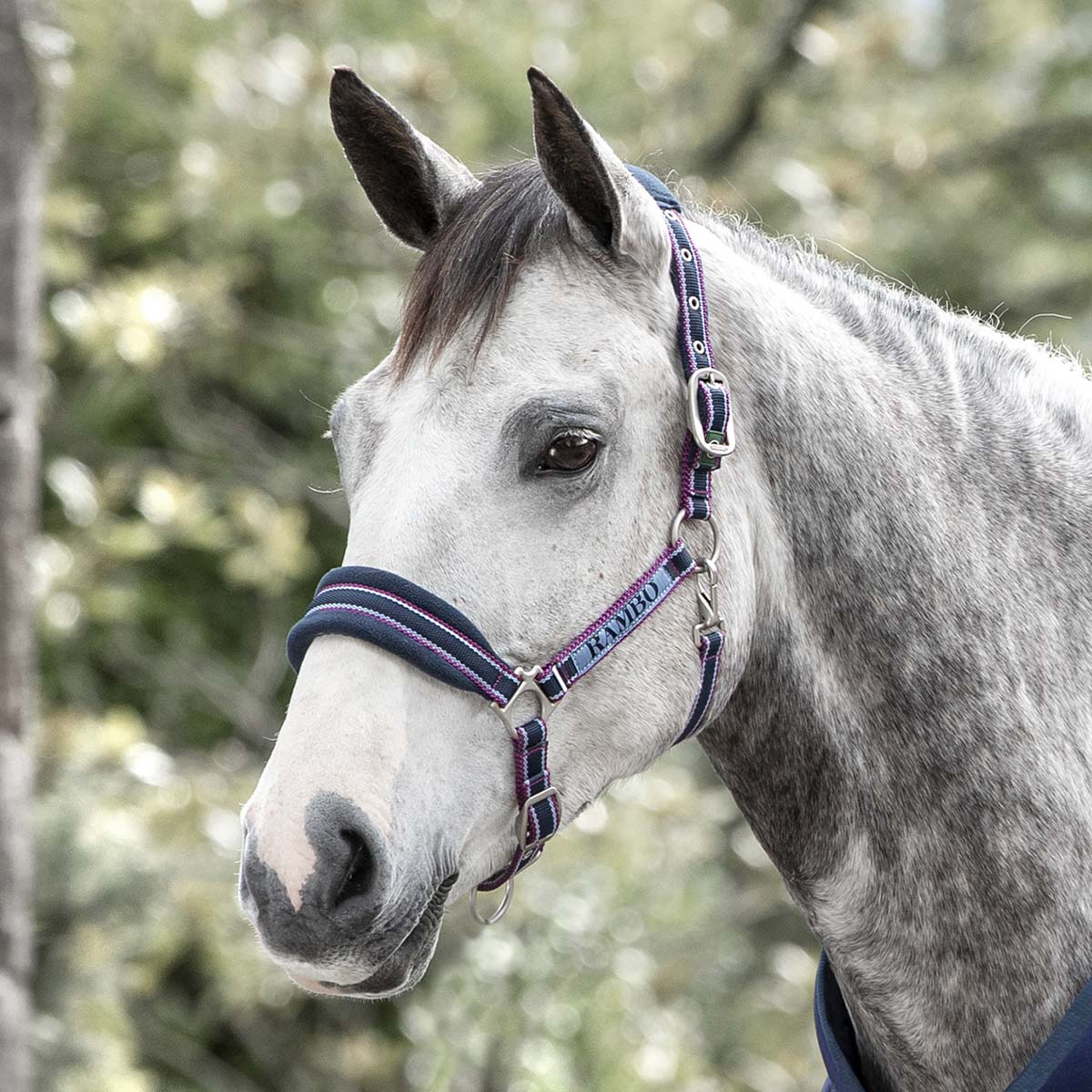 Constructed with robust polypropylene webbing, the Horseware Ireland Rambo Padded Headcollar features a plush fleece-lined nose and headpiece for enhanced comfort. Perfect for daily use or competition, this headcollar is available in various sizes and colors to fit your pony, horse, or cob and can be matched with other items from the Rambo Collection. Its buckles are plated and the buckles and throat clip are hard-wearing.