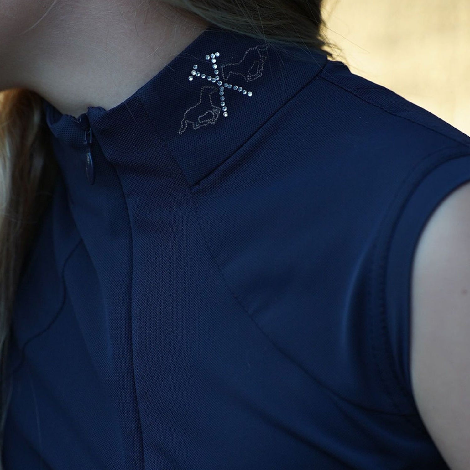 Upgrade your child's wardrobe with the HV Polo Luna Children's Top. Made from breathable mesh fabric, this sleeveless top features a stylish rhinestone-studded logo design on the collarstand. The short blind zipper adds a touch of functionality, while the taped armhole provides comfort and durability. Perfect for any young equestrian enthusiast.
