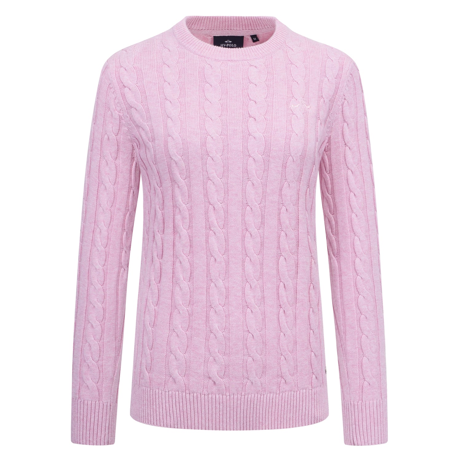 Experience elegance and style with HV Polo's Tally Pullover. Crafted from soft luxury cotton, this pullover features feminine shaping, fashionable colors, and a sophisticated cable pattern. Rib-knitted round-neck, cuffs, and hem provide a comfortable and flattering fit. Complete with horse logo embroidery and metal coin detail, this pullover is both chic and cozy.