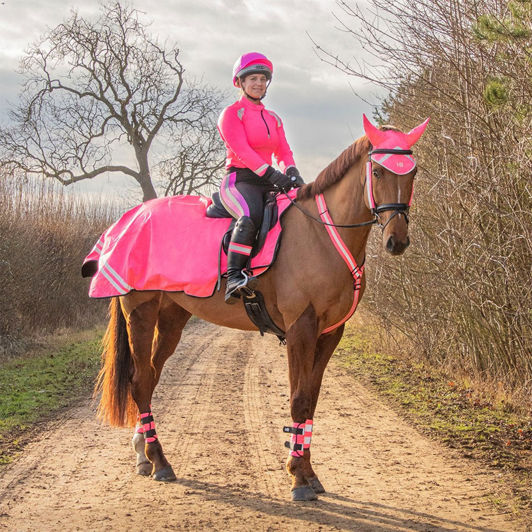 Made from a fluorescent material with reflective detailing. The Reflector Martingale is designed to go around the horse’s neck and attaches to the girth to create optimum visibility for when you need it most.