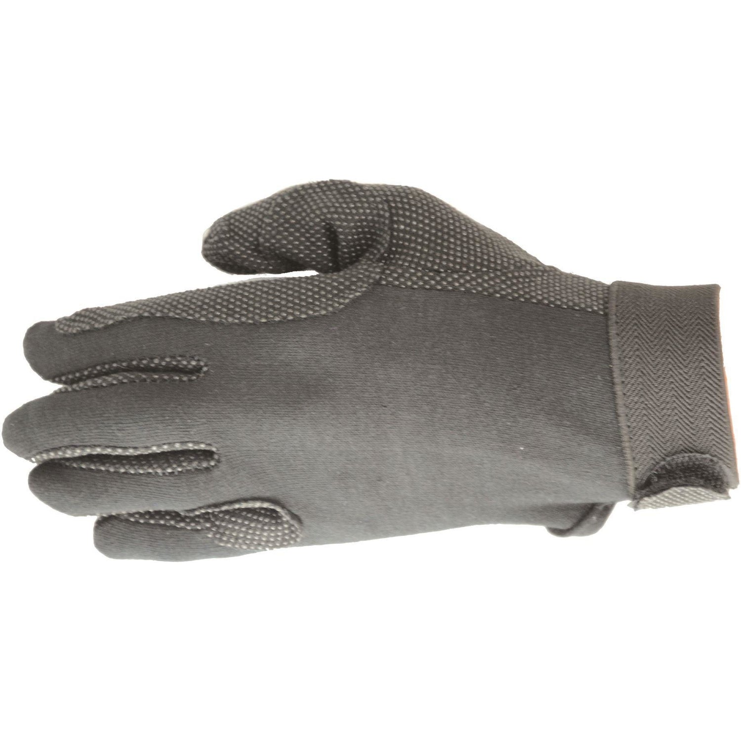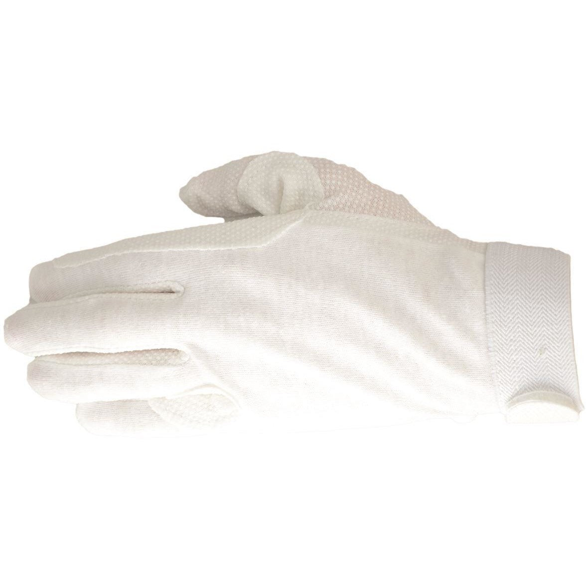 100% cotton knit gloves featuring pimple palm grips. Velcro closure fastening wrist straps. Machine washable.
