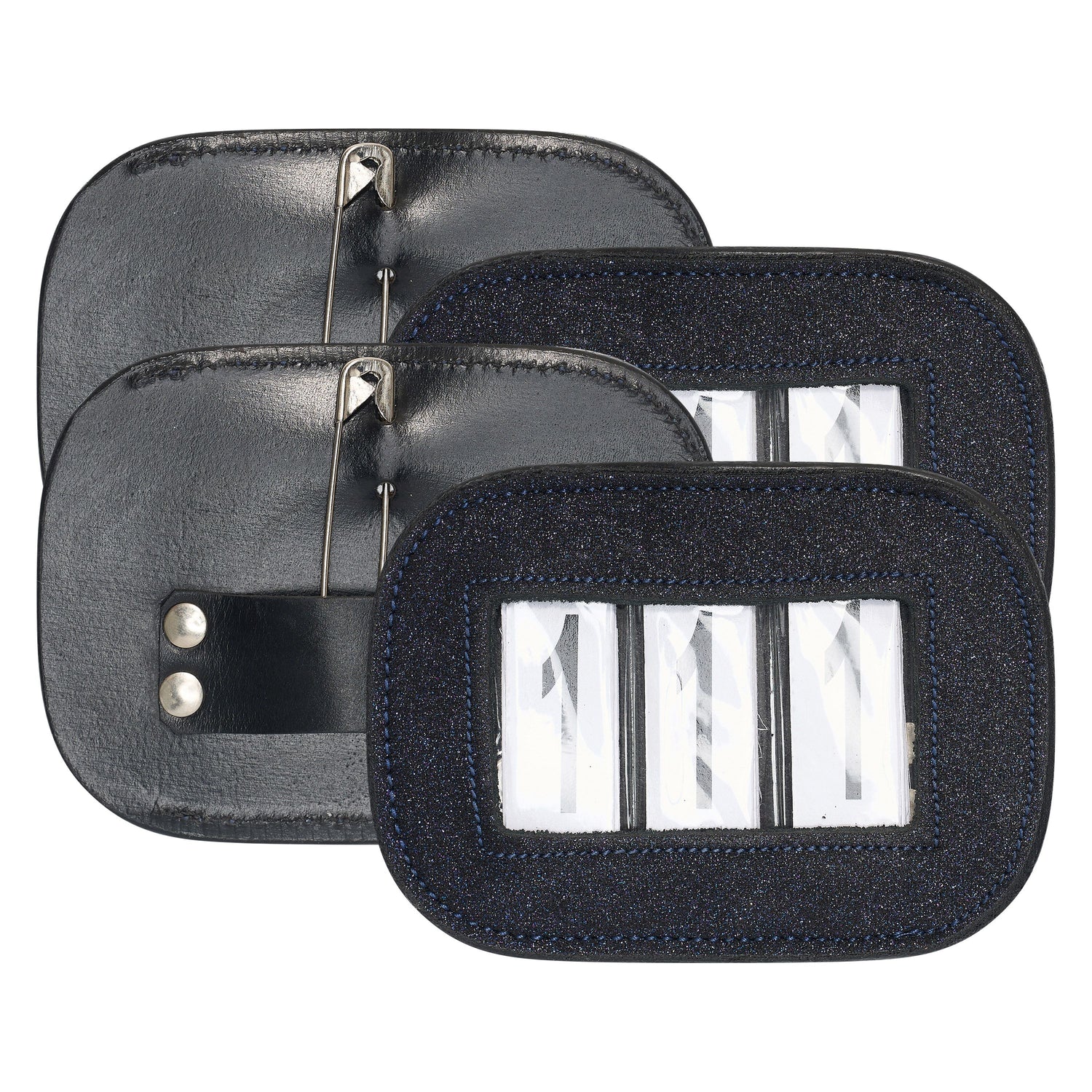 The square version of the glitter competition numbers combines a shiny front with practical safety pin and snap button closures. They hold up to three digits and come in a set of two.