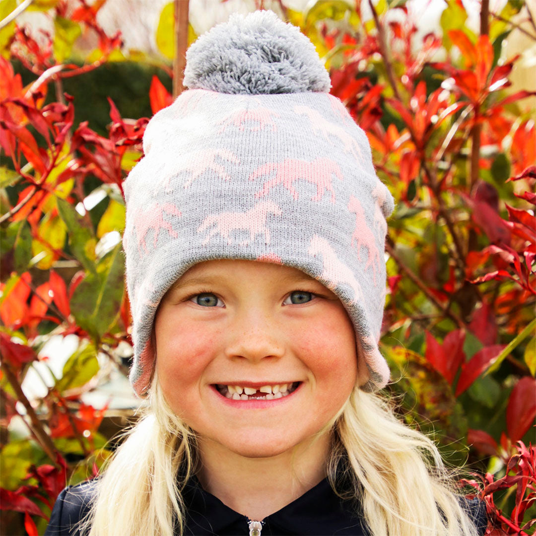 The warm and cosy Hy Equestrian Flaine Children's Bobble Hat is perfect for your horse-mad child. to keep them feeling warm and cosy whether they are spending the day T the yard, or heading out for a family walk.