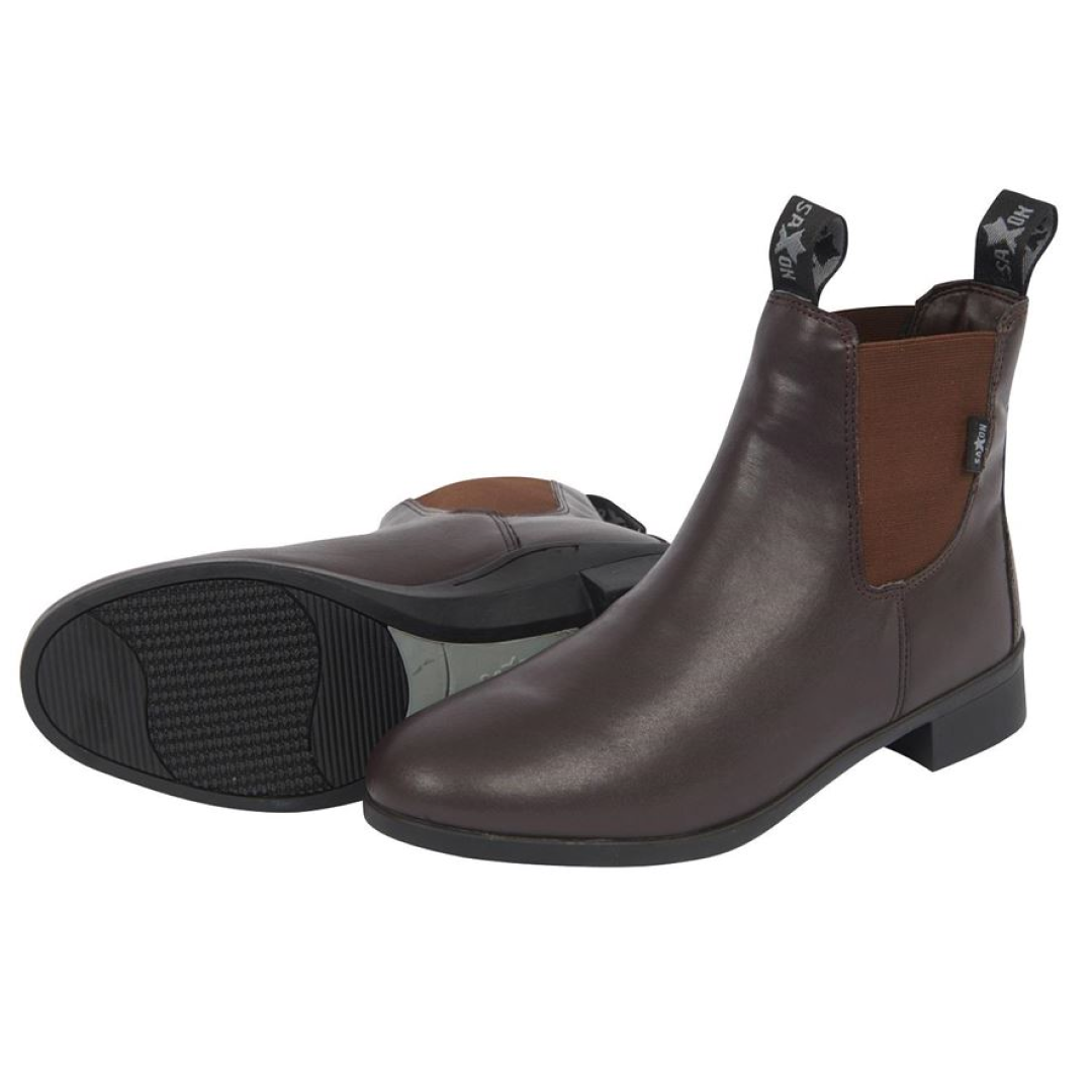 The Saxon Syntovia Jodhpur Boots are made from quality grained PU which looks juts like leather, with Saxon branded pull ups, EVA foot bed for comfort and a hard wearing rubber sole.
