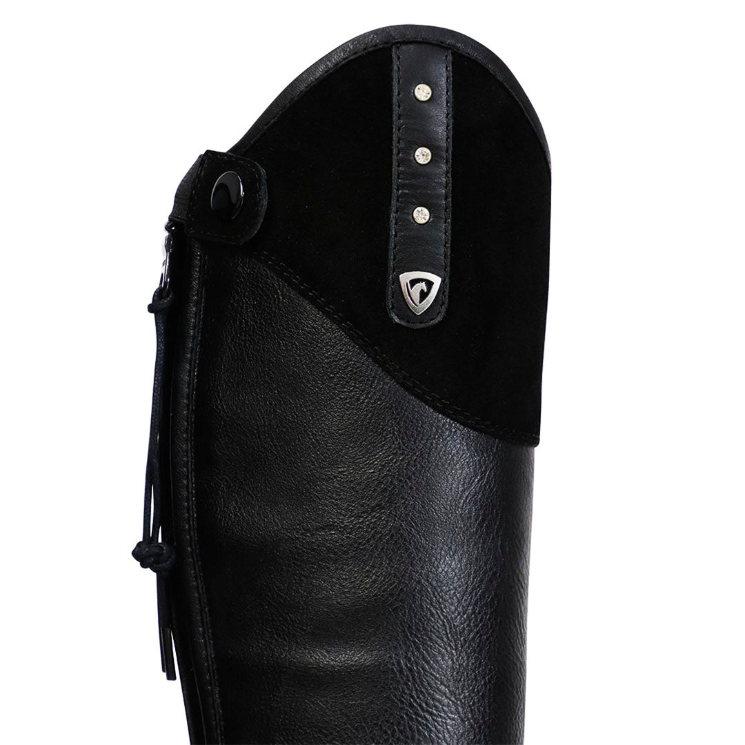 Beautifully crafted using a combination of real and synthetic leather, the Soriso Boots are both supple and comfortable, as the synthetic stretch leather closely hugs the contours of the calf with no restriction allowing your young jockey to maintain full flexibility in the saddle, for optimum performance.