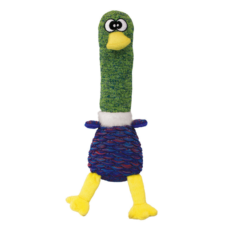 KONG Shakers Cuckoos tennis shoe material entices tugging and shaking instincts adding up to long runs of fun. A full-bodied, low tone squeaker pumps up indoor play sessions while crackle sounds and a long body keep dogs engaged. A flock of playful bird characters and a reinforced liner ensures that playtime lasts.