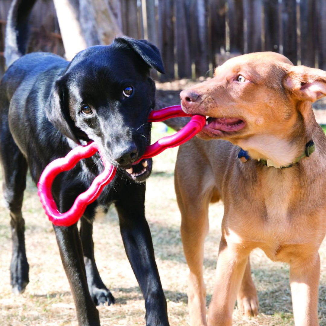 KONG Tug Toy encourages interactive play sessions. The Tug Toy is made with natural KONG rubber, that springs back into shape during a game of tug. The comfortable grips make it easy to keep hold during on-going games of tug.